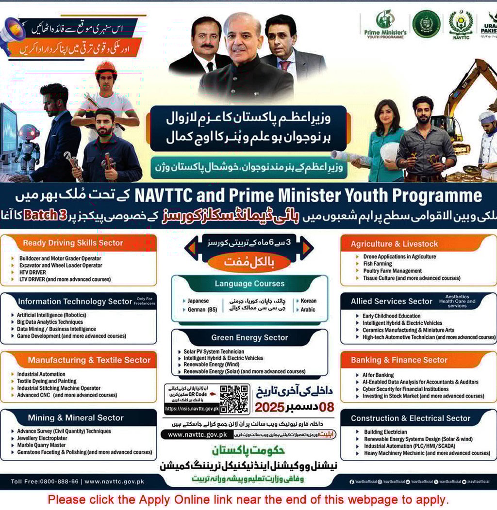 Prime Minister Youth Skills Development Program November 2025 December NAVTTC