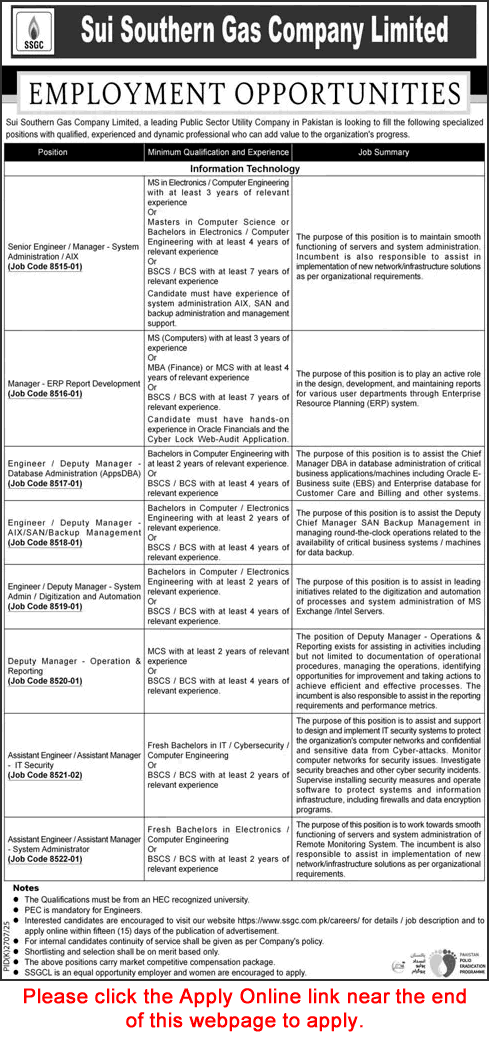 SSGC Jobs February 2026 Apply Online Sui Southern Gas Company Limited Latest